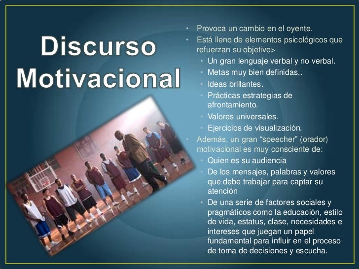 Los mismos pueden darse en situaciones laborales. No fuisteis criados para vivir como bestias sino para seguir en pos de la virtud y la sabiduría. En un discurso motivacional, es incluso mejor si el orador ha pasado por sus propias circunstancias difíciles, y puede relacionar su historia como un ejemplo para motivar a otros. Un buen discurso motivacional requiere tiempo y preparación adecuados para permitir que el orador se sienta cómodo. Discurso motivacional dirigido a los trabajadores de liverpool. Clasificación de los discursos los discursos pueden clasificarse según distintos puntos de vista punto de vista de la relación: Aprender a escribir un discurso motivacional lo que otros puede ayudar a hacer cambios positivos. Es necesario que los estudiantes _ una prueba de. Como cerrar un discurso para estudiantes motivacional. Ejemplo de cómo hacer un discurso. Al ser un trabajo que no requiere un tipo de estudios en concreto la mayoría de las veces a nivel base. Te indicamos cuales son los mejores 10, y además encontrarás información referente al tema. 3:56 deport 1 892 367 просмотров.